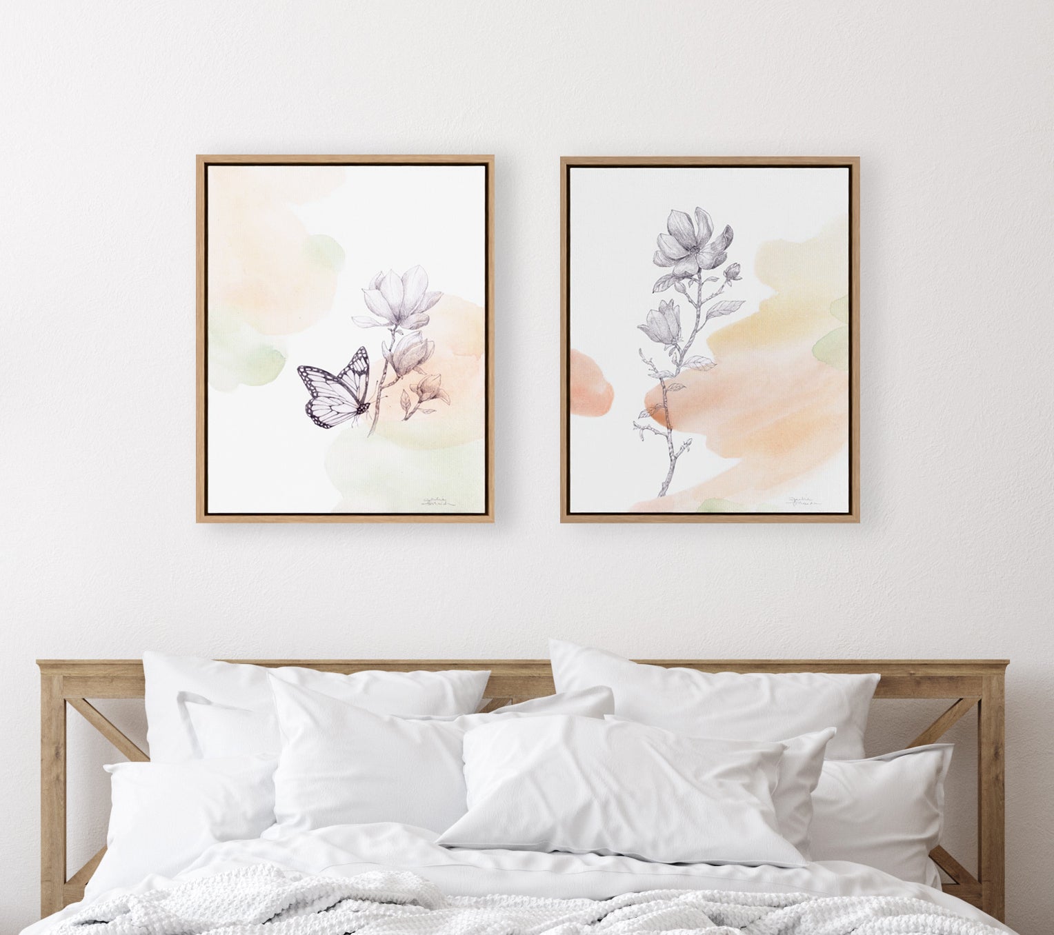 Framed canvases are set in an elegant solid wood float frame with a subtle ⅛" shadow gap and arrive ready to hang. Unframed canvases require additional hanging hardware.