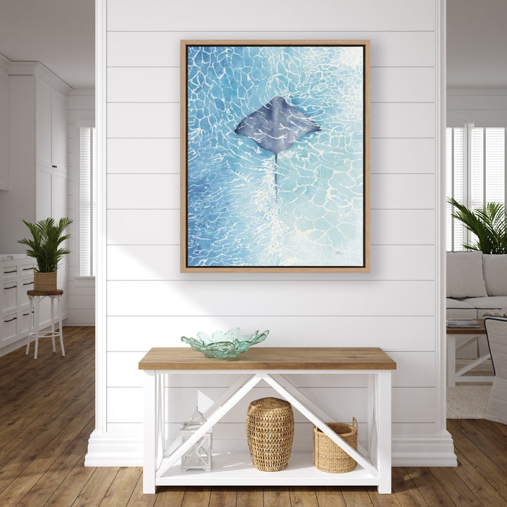 1. Framed canvases come ready to hang. Use the small ledge between the wooden frame and the canvas. They are designed to hang flush against the wall if you choose this method.