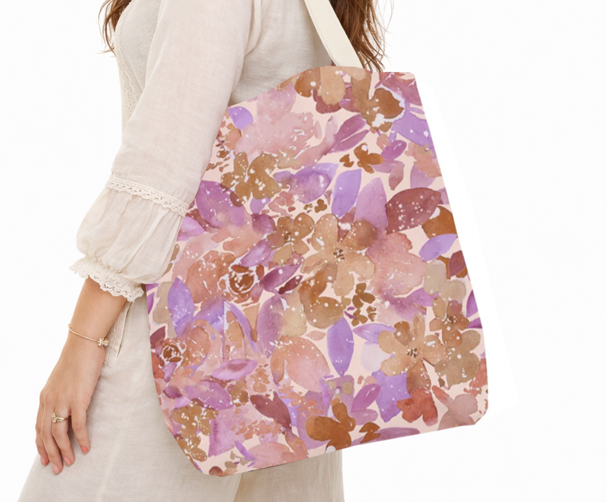 Artisan Tote Bag - "Retro Florals" in Light Pink